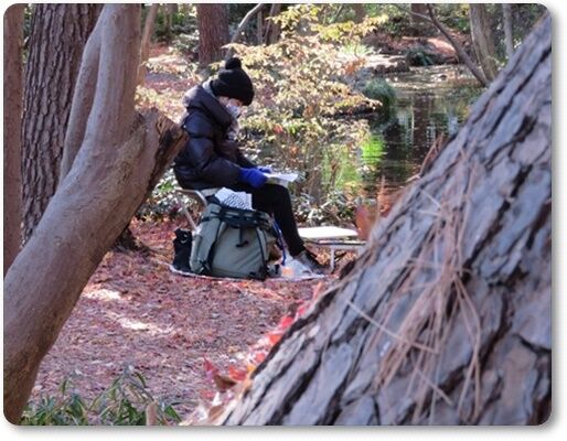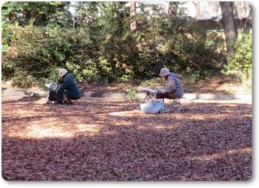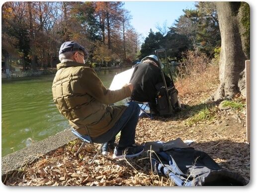 寒さにめげず 無心にスケッチなさる 会員の方々