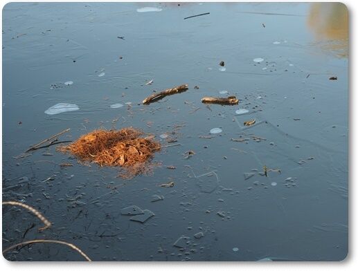 集合時間時の池には 薄氷が張っていました