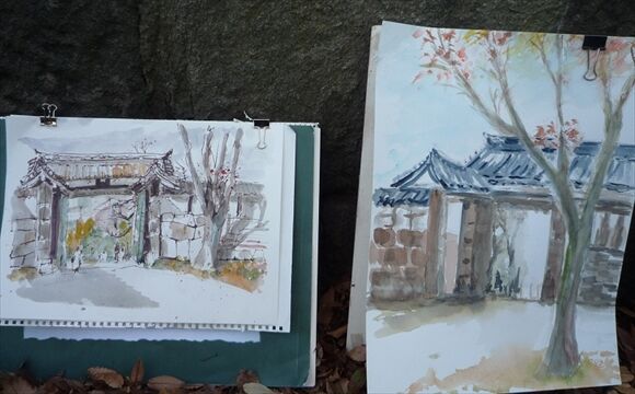 エリアが広く、見所も多いので、あちこち分散しての写生となりました。