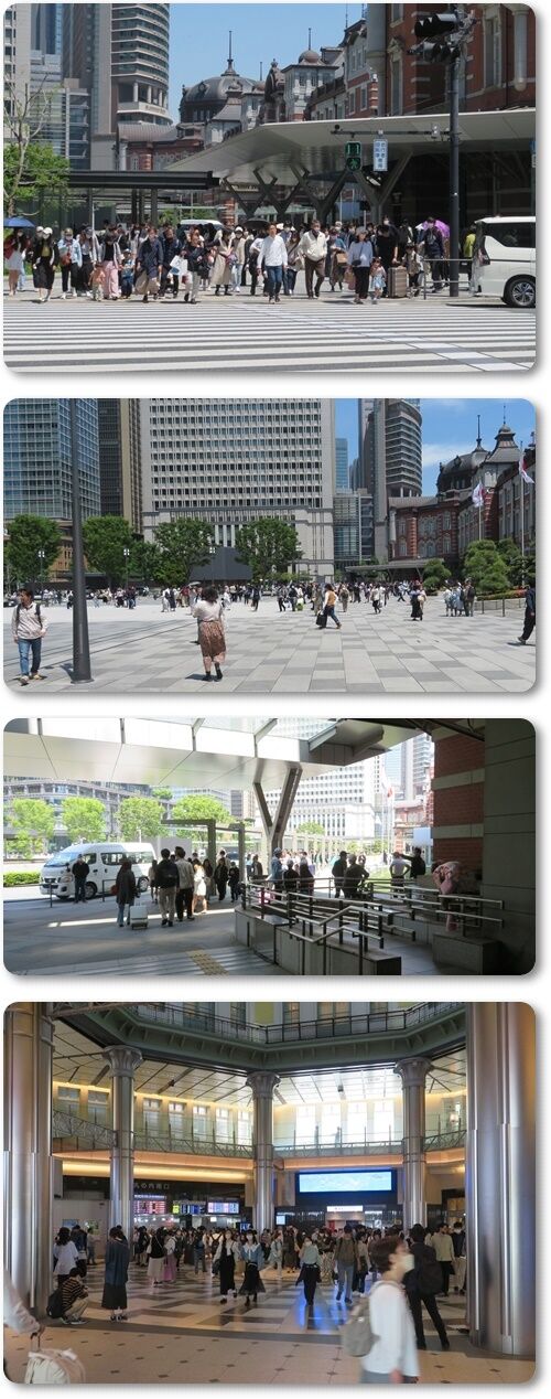 東京駅前広場は人で一杯 特に外国人観光客が目立ちました。