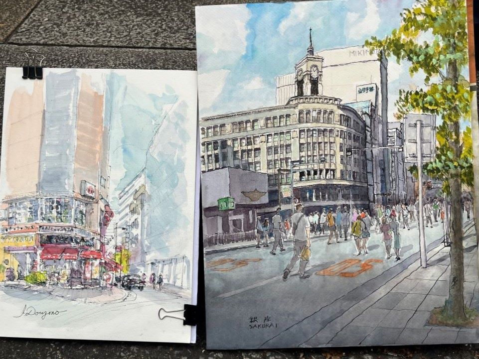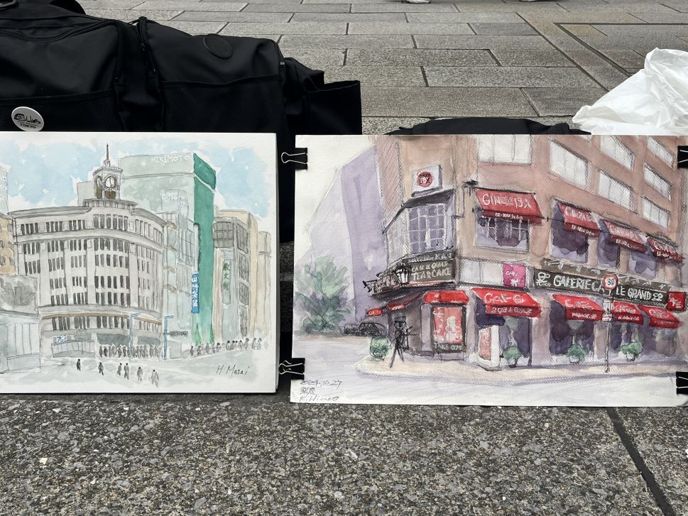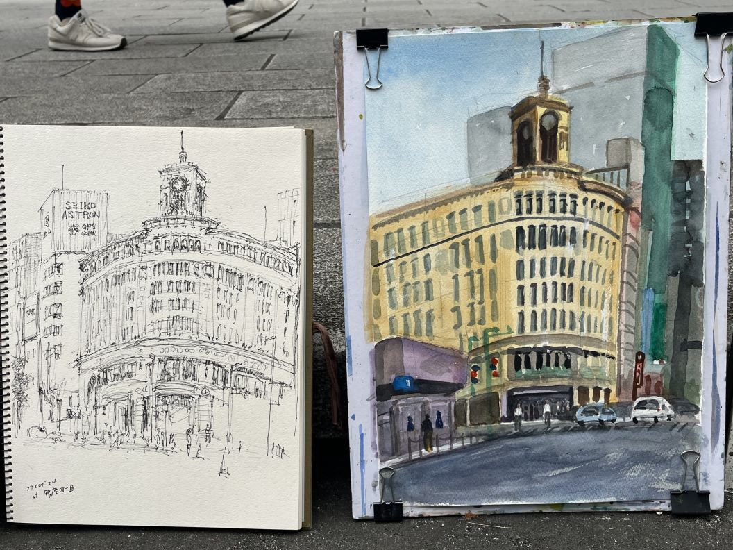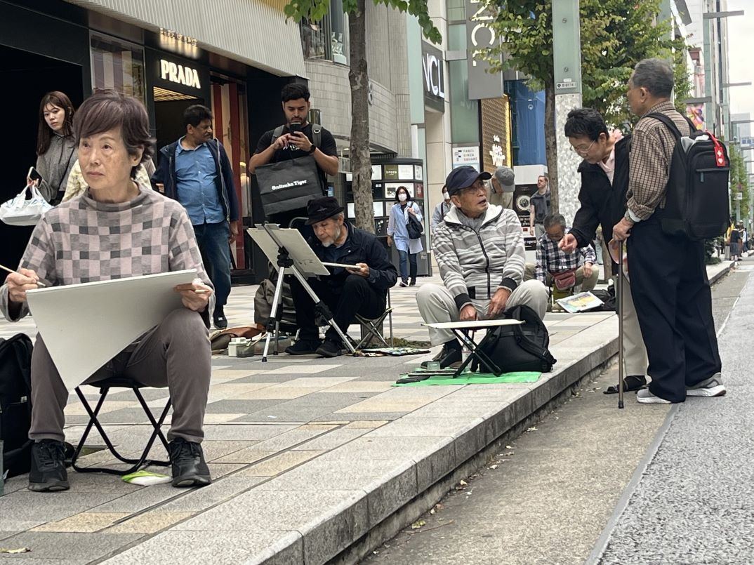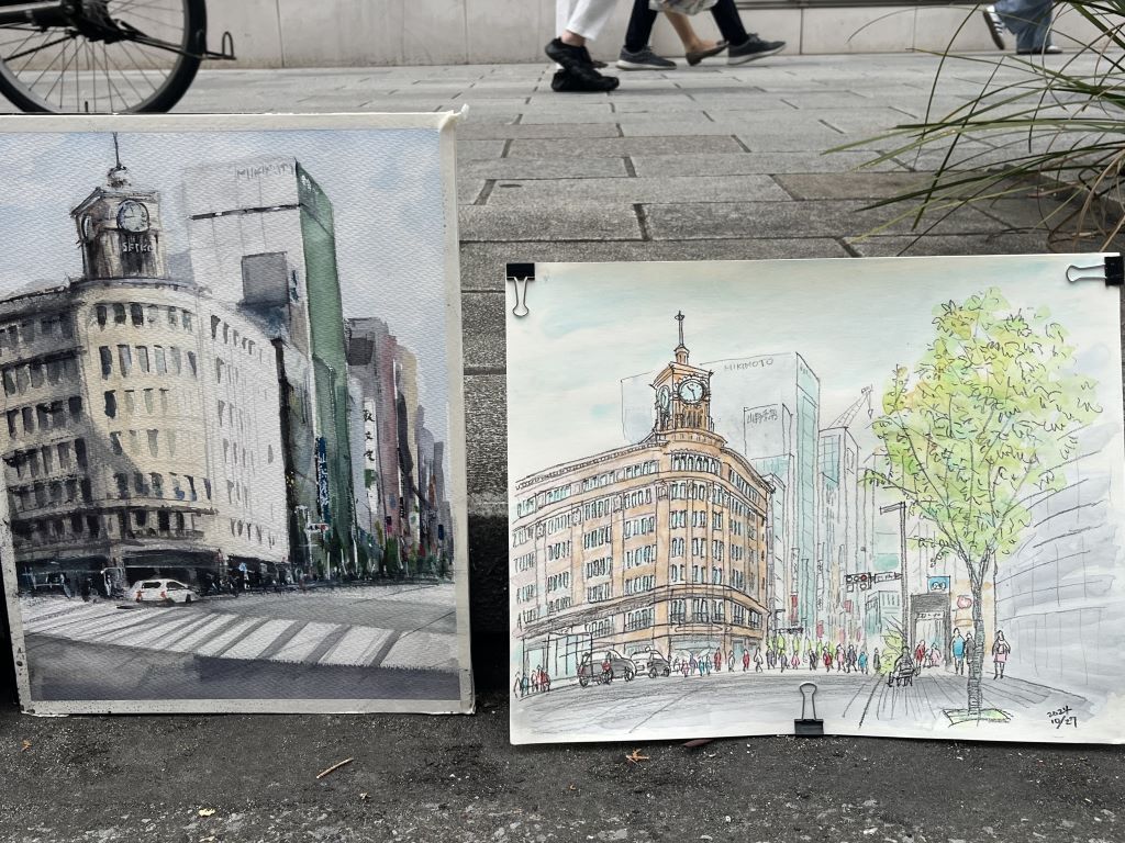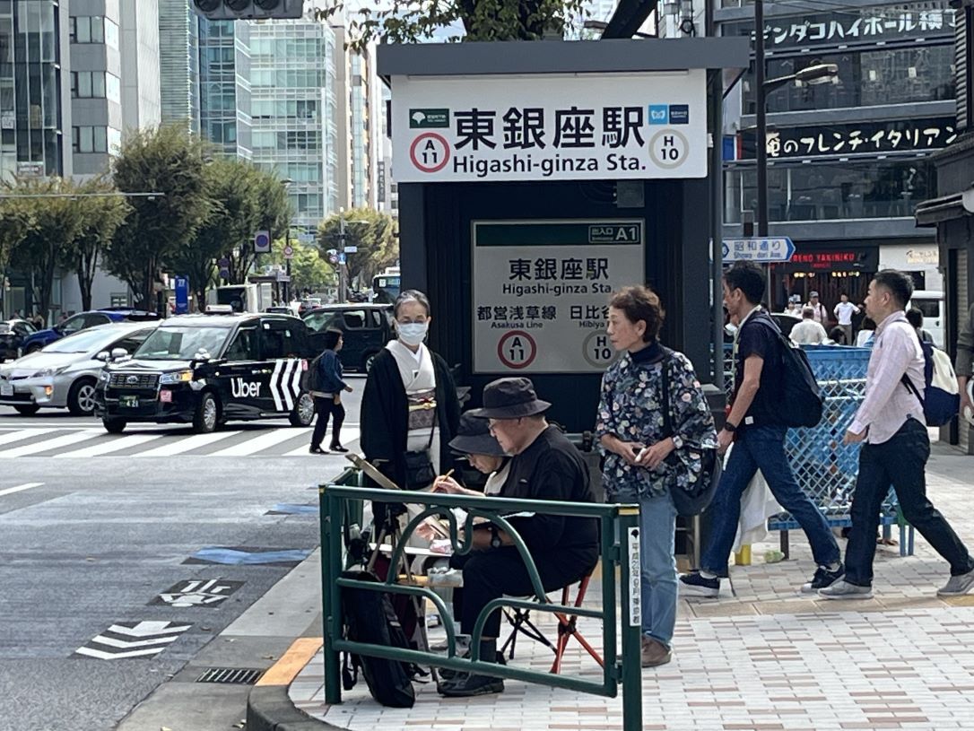 普段ひとりで銀座の交差点で大きな紙を出してスケッチするのは