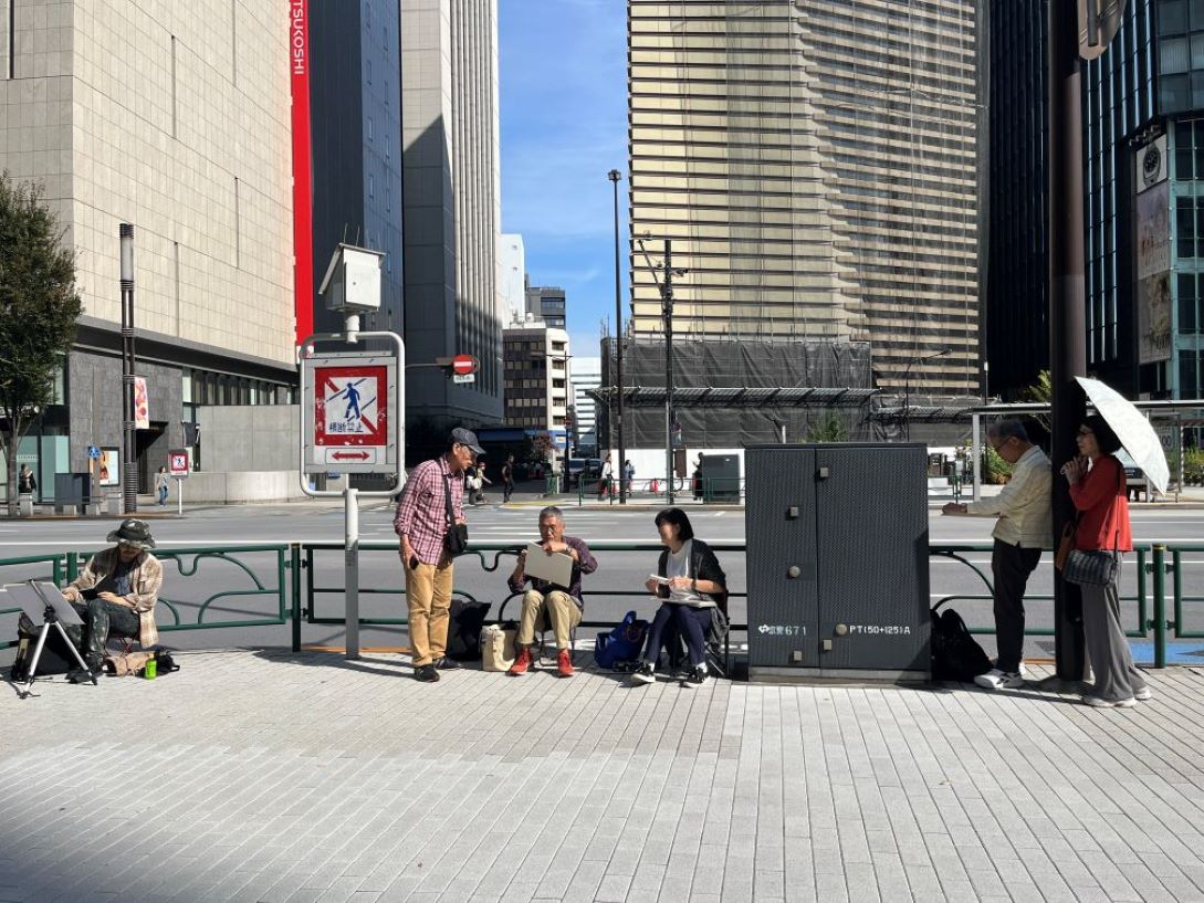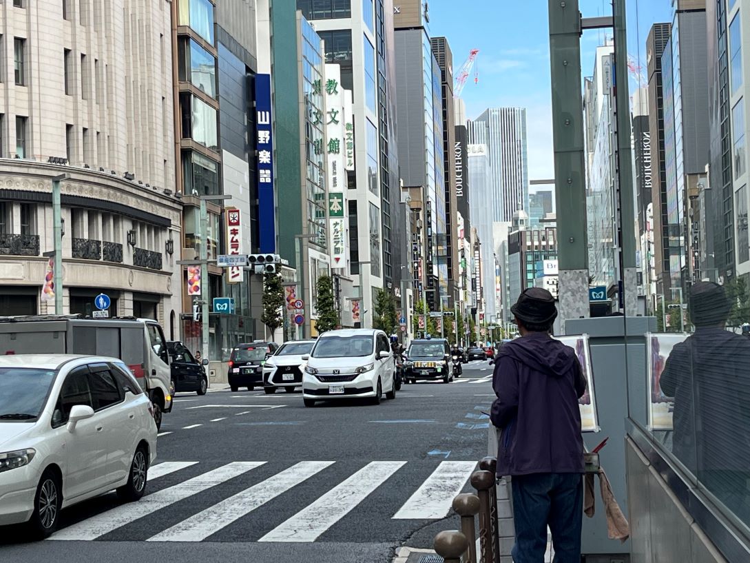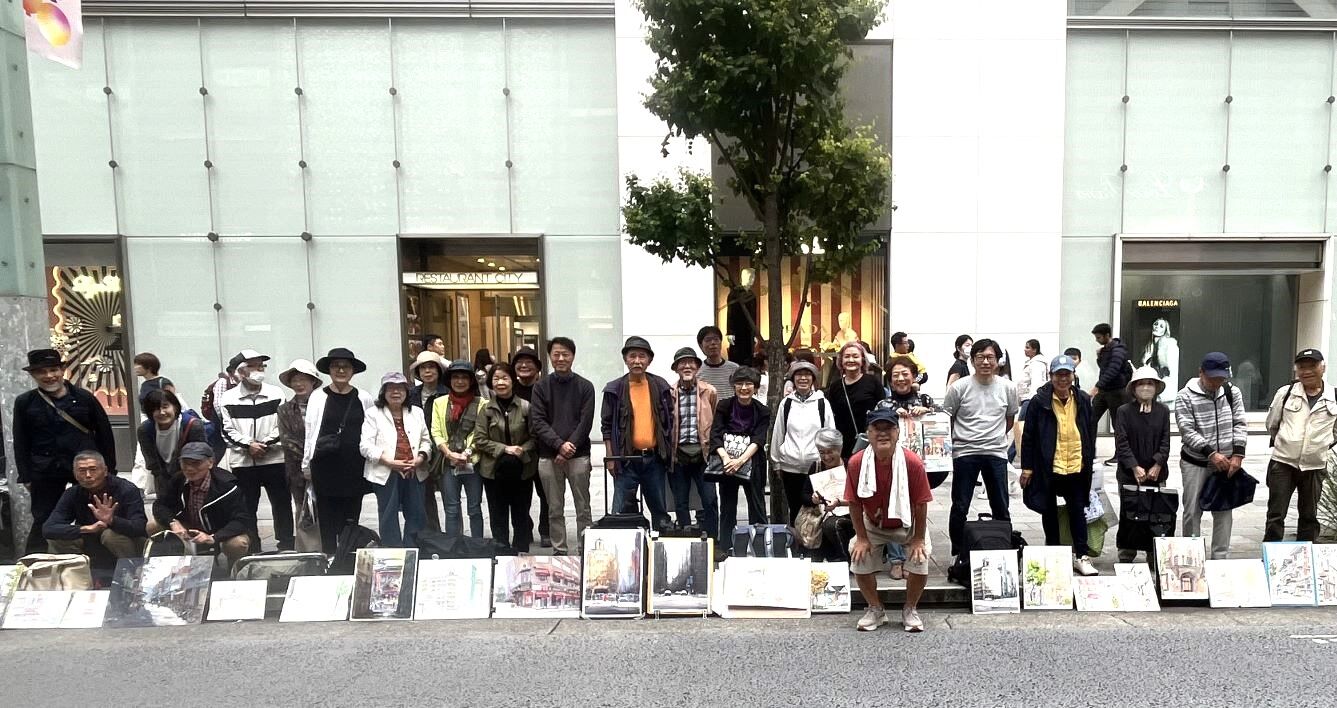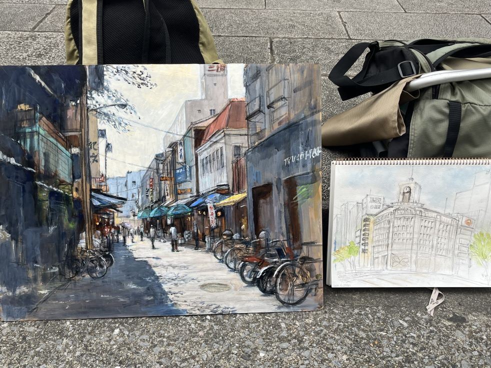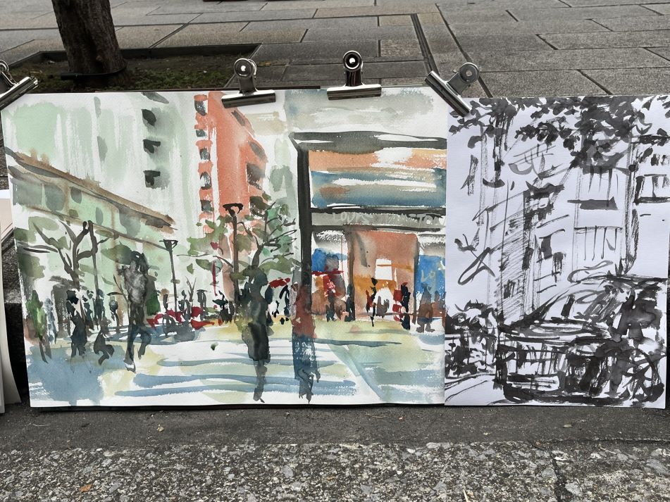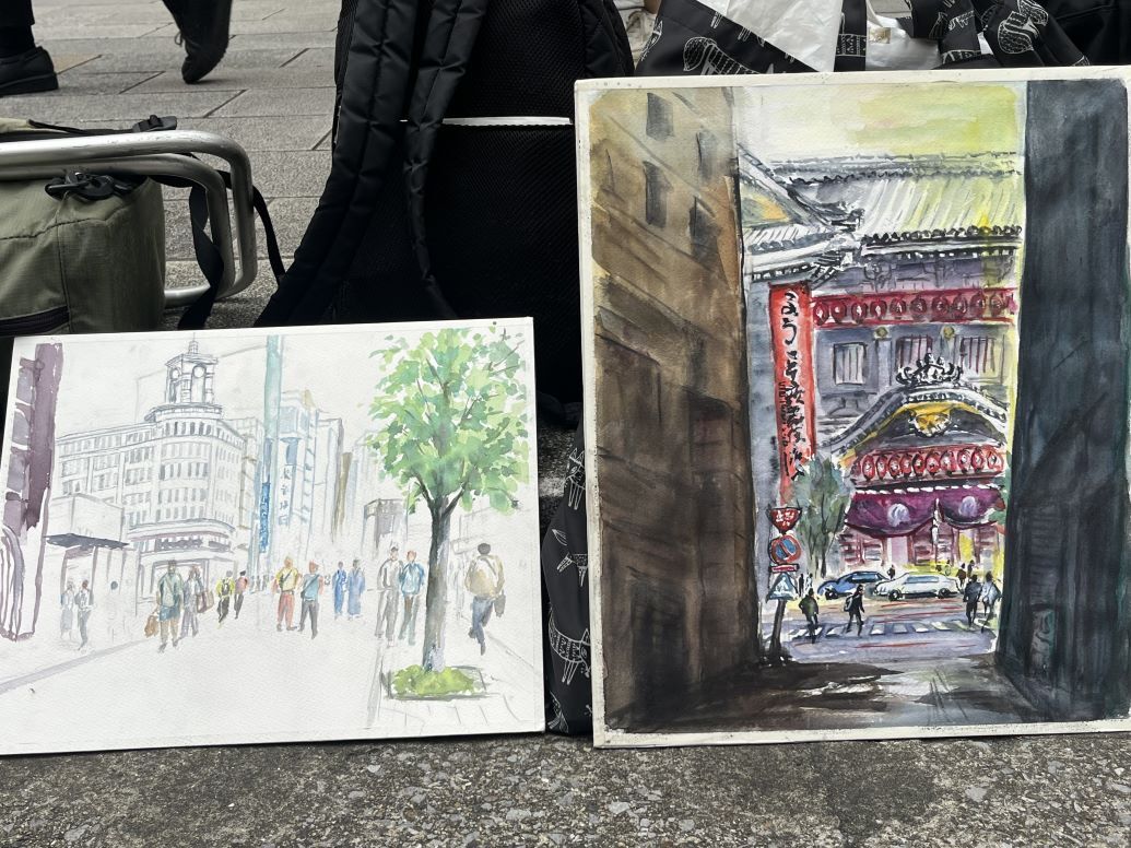 普段ひとりで銀座の交差点で大きな紙を出してスケッチするのは