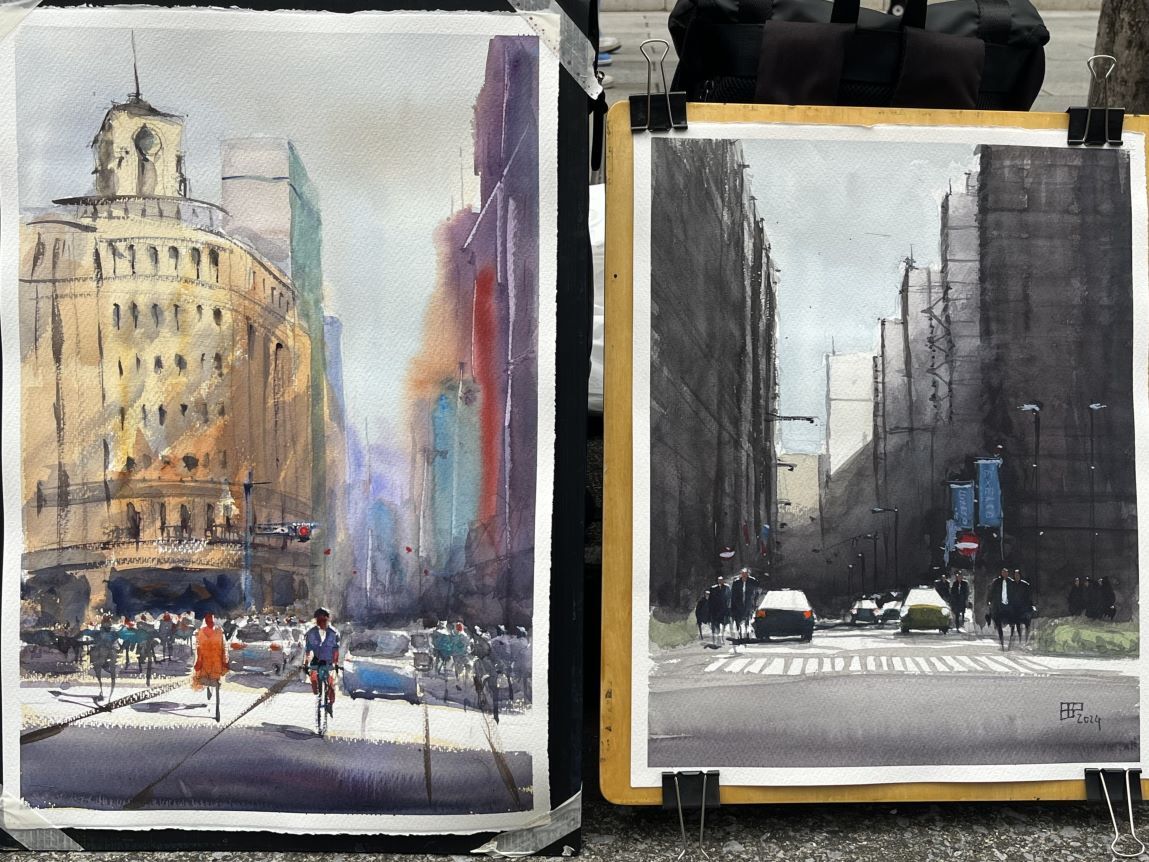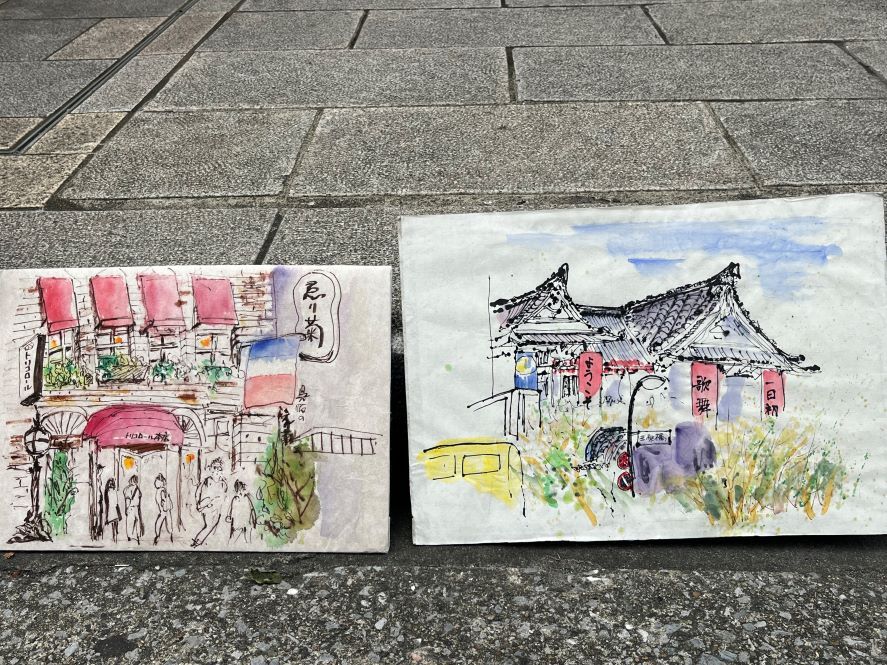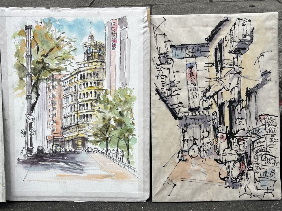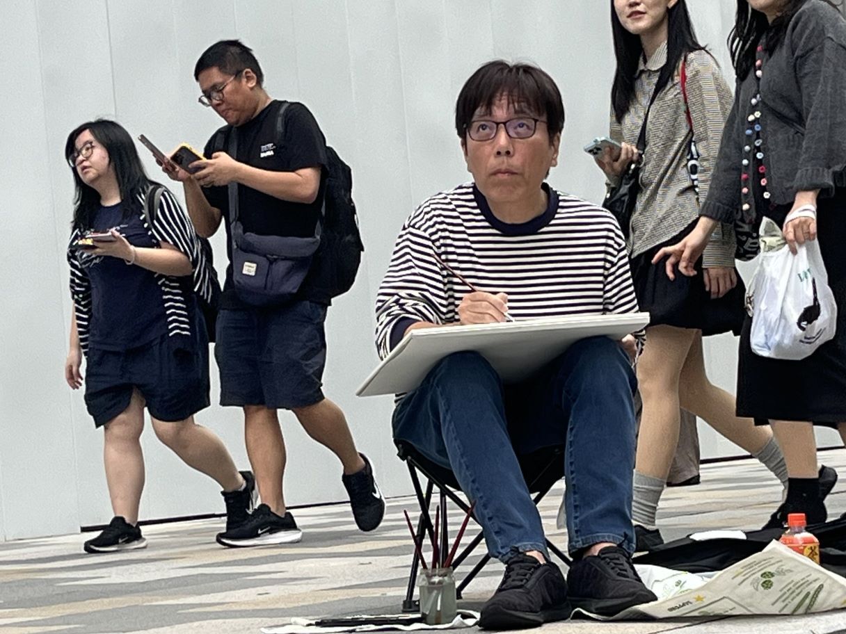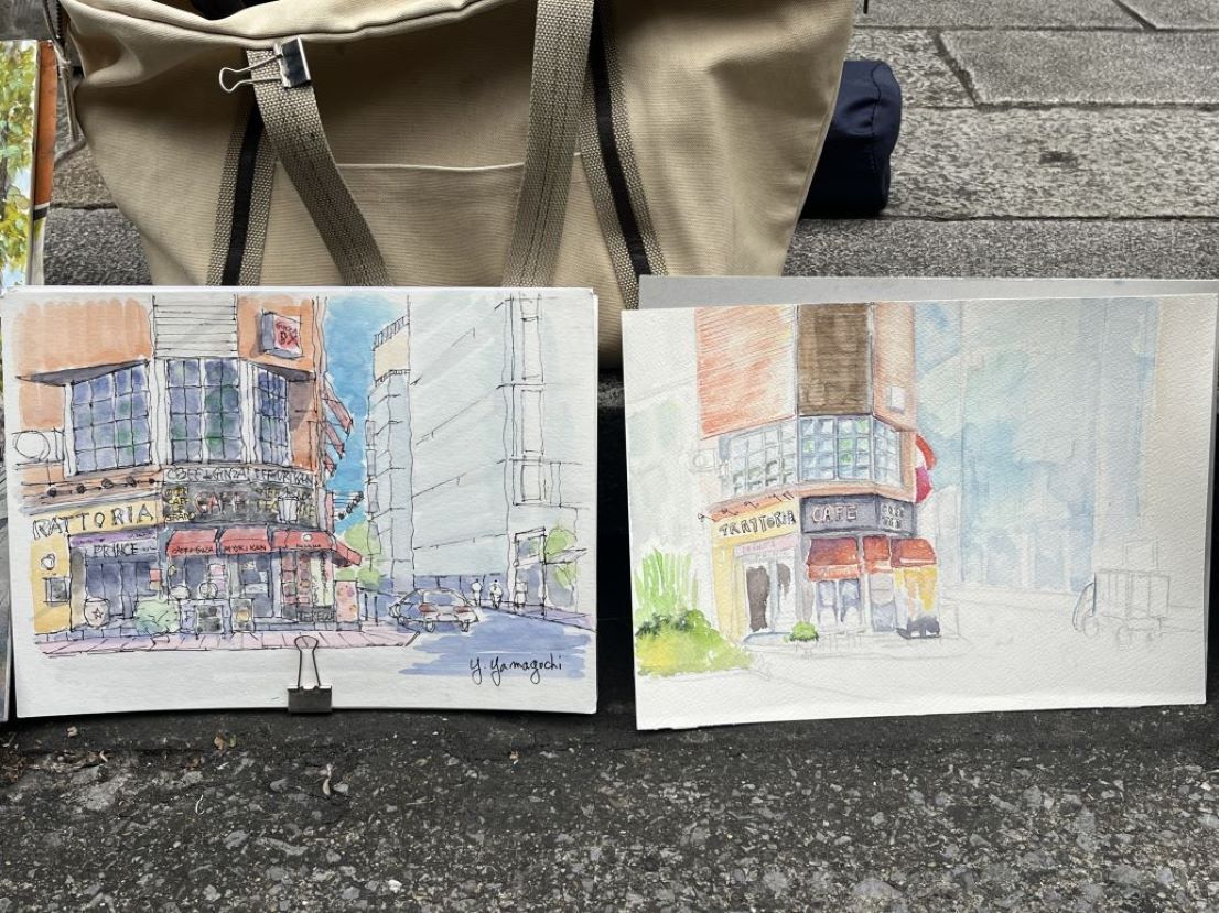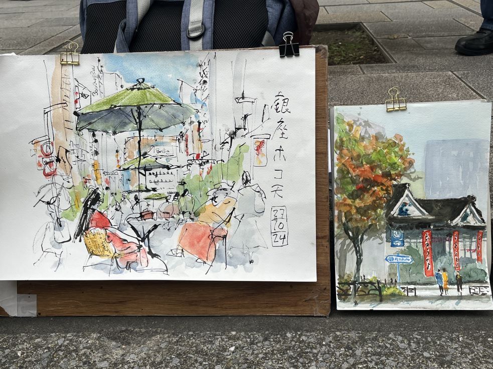 普段ひとりで銀座の交差点で大きな紙を出してスケッチするのは