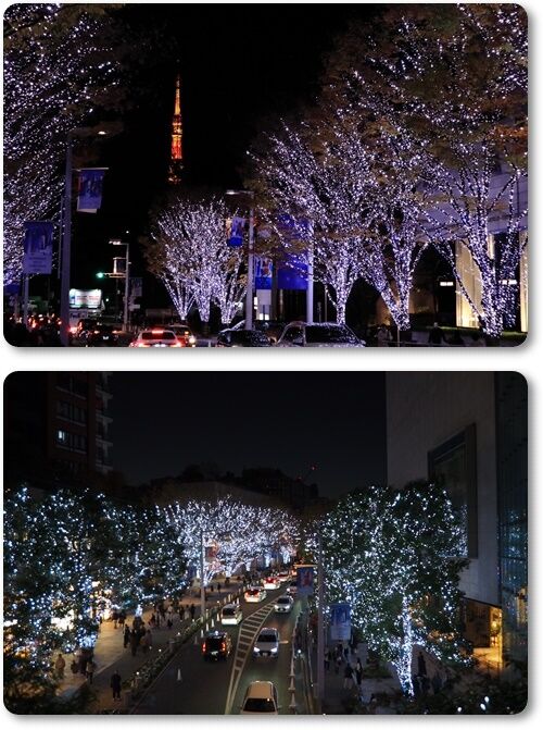 下は けやき坂のイルミネーションと