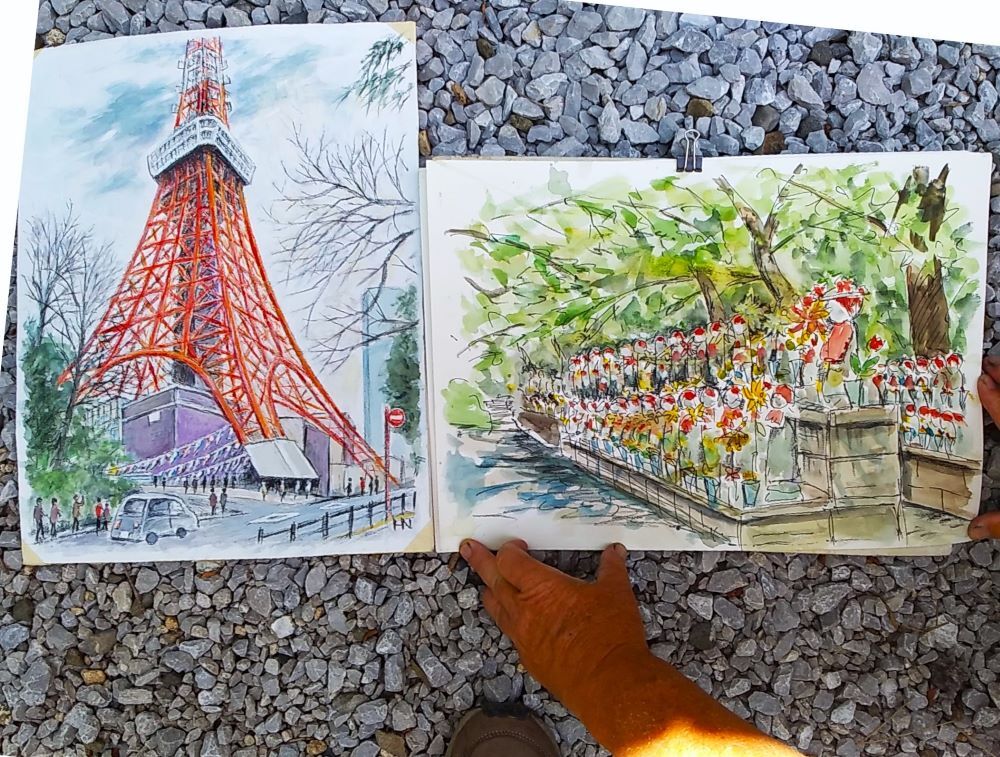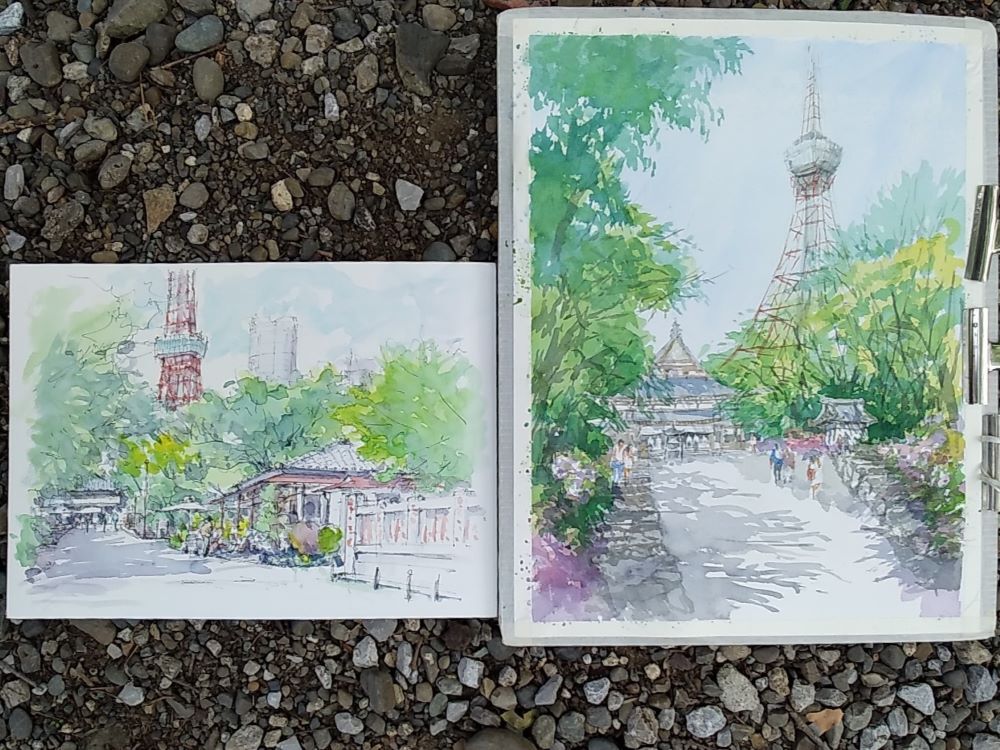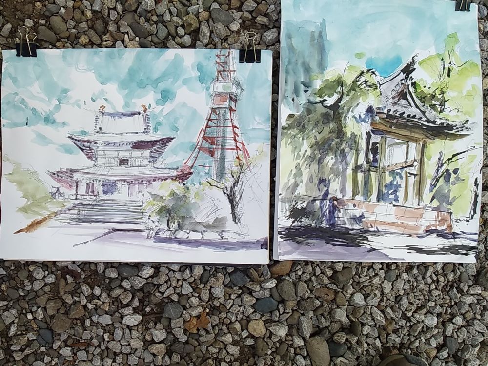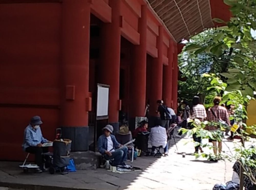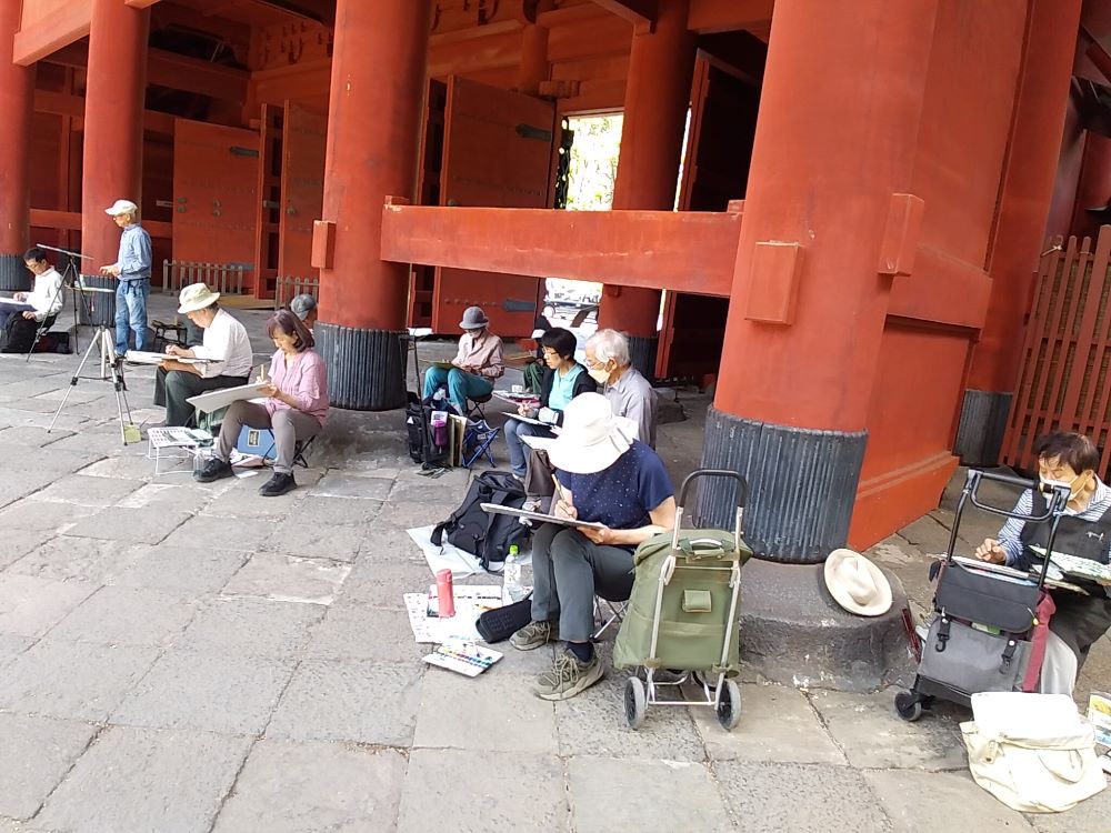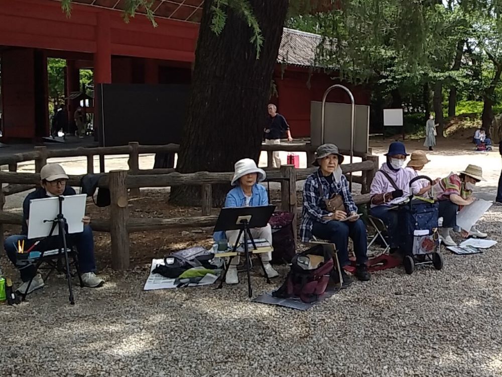 皆さん日差しを避け 木陰からスケッチしていました。