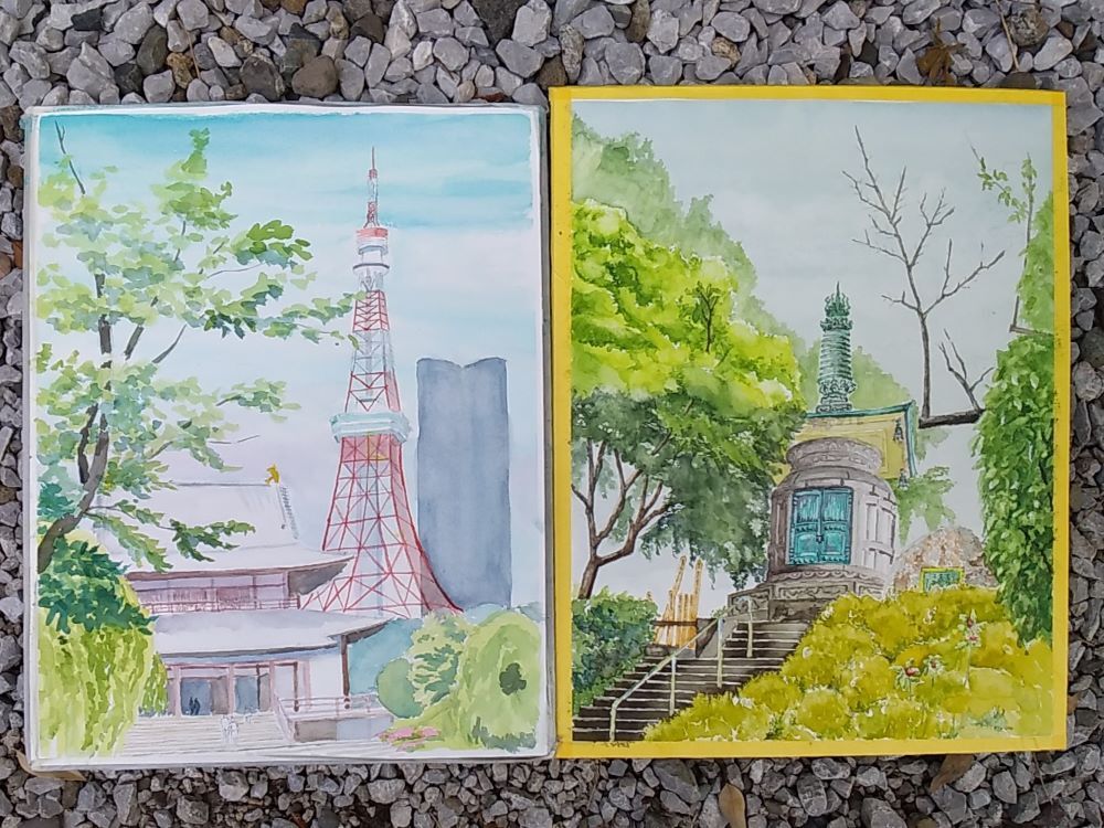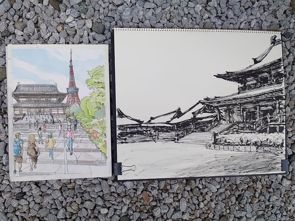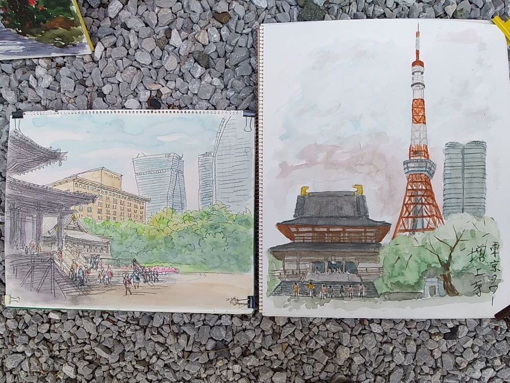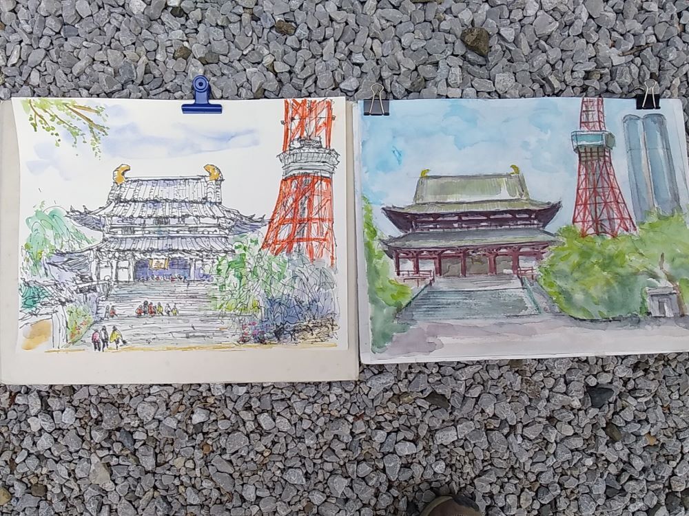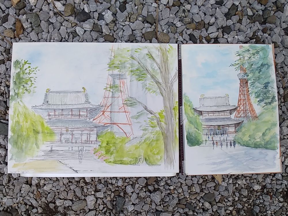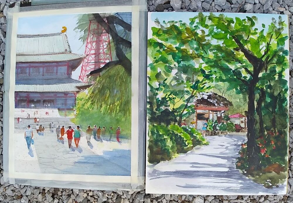 皆さん日差しを避け 木陰からスケッチしていました。
